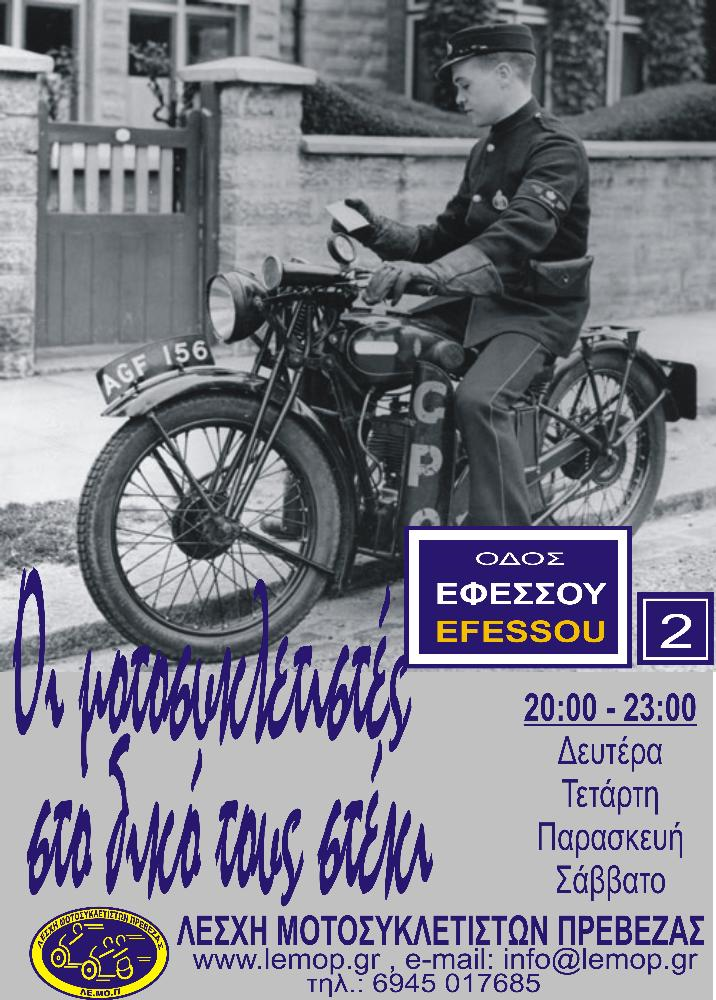 | Παρουσίαση | Η ΛΕΣΧΗ ΜΟΤΟΣΥΚΛΕΤΙΣΤΩΝ ΠΡΕΒΕΖΑΣ (ΛΕ.ΜΟ.Π) ιδρύθηκε τον Οκτώβριο του 2004 από μια παρέα μοτοσικλετιστών , που είχαν σαν στόχο την ανάπτυξη της ιδέας του μοτοσυκλετισμού στην Πρέβεζα. Στην ίδρυση της οδήγησε η ανάγκη για συνεργασία και για κοινή δράση σε θέματα που αφορούν το δίκυκλο και η αγάπη ουσιαστικά όλων γι' αυτό που ονομάζεται "μοτοσυκλετισμός". Τον Μαϊο του 2005 πιστοποιήθηκε από το Πρωτοδικείο Πρέβεζας ως σωματείο και έκτοτε αριθμεί μέχρι στιγμής 47 μέλη.